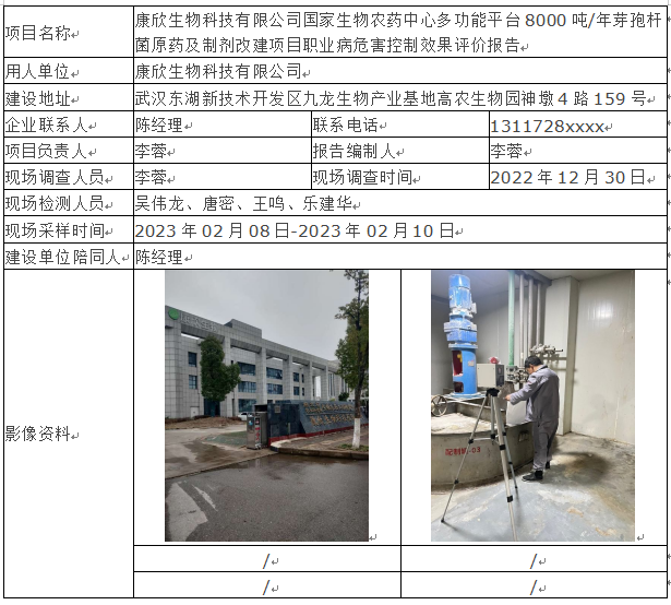 康欣生物科技有限公司国家生物农药中心多功能平台8000吨年芽孢杆菌原药及制剂改建项目