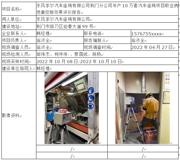 东风李尔汽车座椅有限公司荆门分公司年产10万套汽车座椅项目
