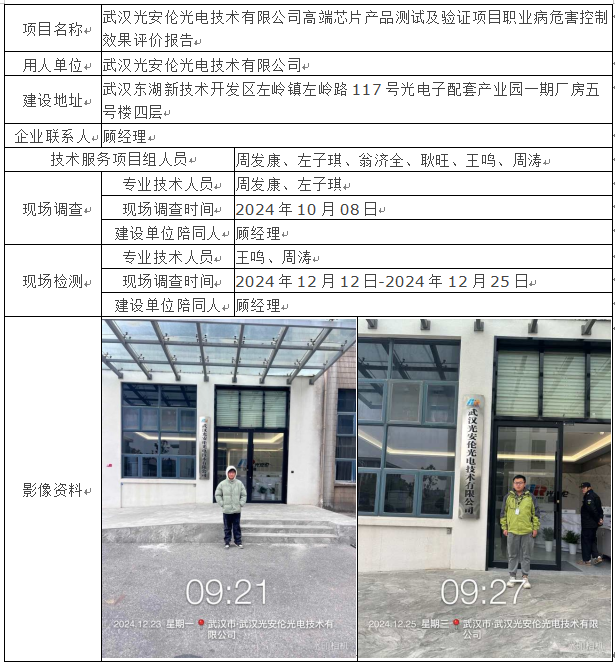 武汉光安伦光电技术有限公司高端芯片产品测试及验证项目