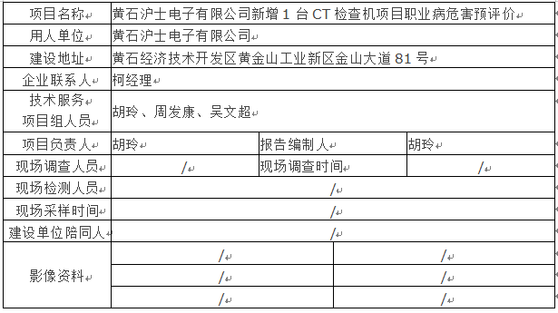 黄石沪士电子有限公司新增1台CT检查机项目