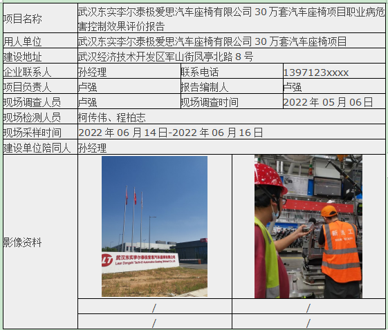武汉东实李尔泰极爱思汽车座椅有限公司30万套汽车座椅项目