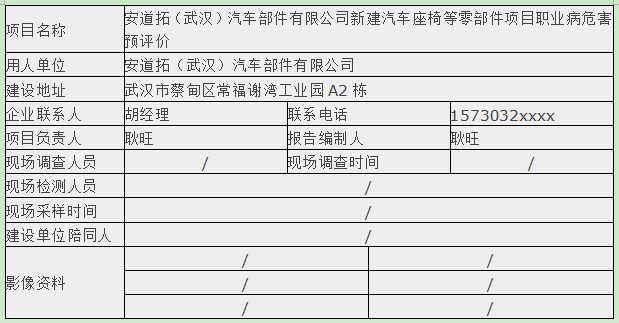 安道拓(武汉)汽车部件有限公司新建汽车座椅等零部件项目