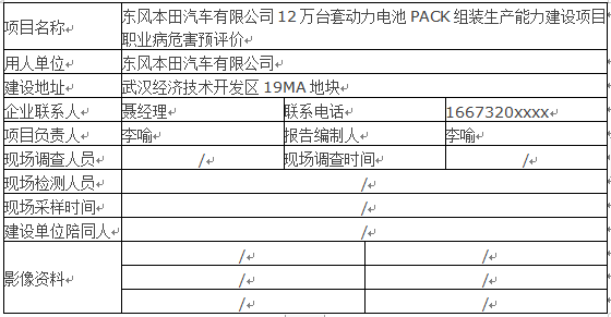 东风本田汽车有限公司12万台套动力电池PACK组装生产能力建设项目