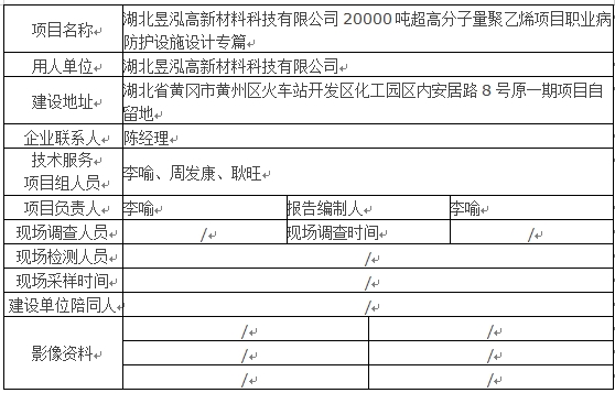 湖北昱泓高新材料科技有限公司20000吨超高分子量聚乙烯项目