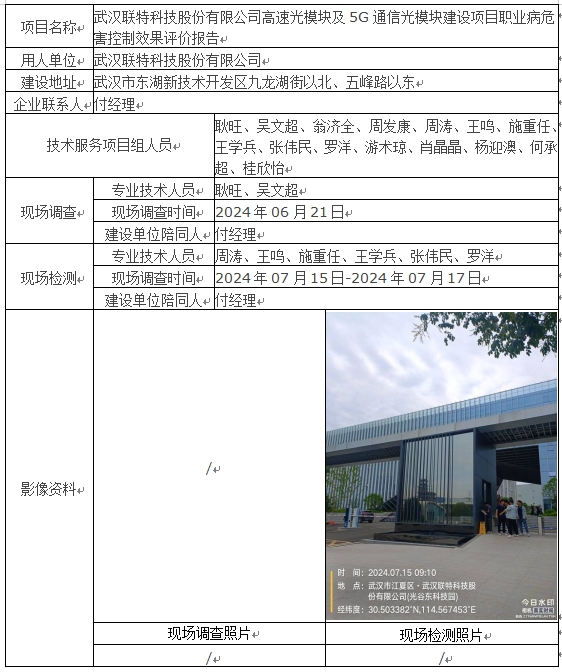 武汉联特科技股份有限公司高速光模块及5G通信光模块建设项目