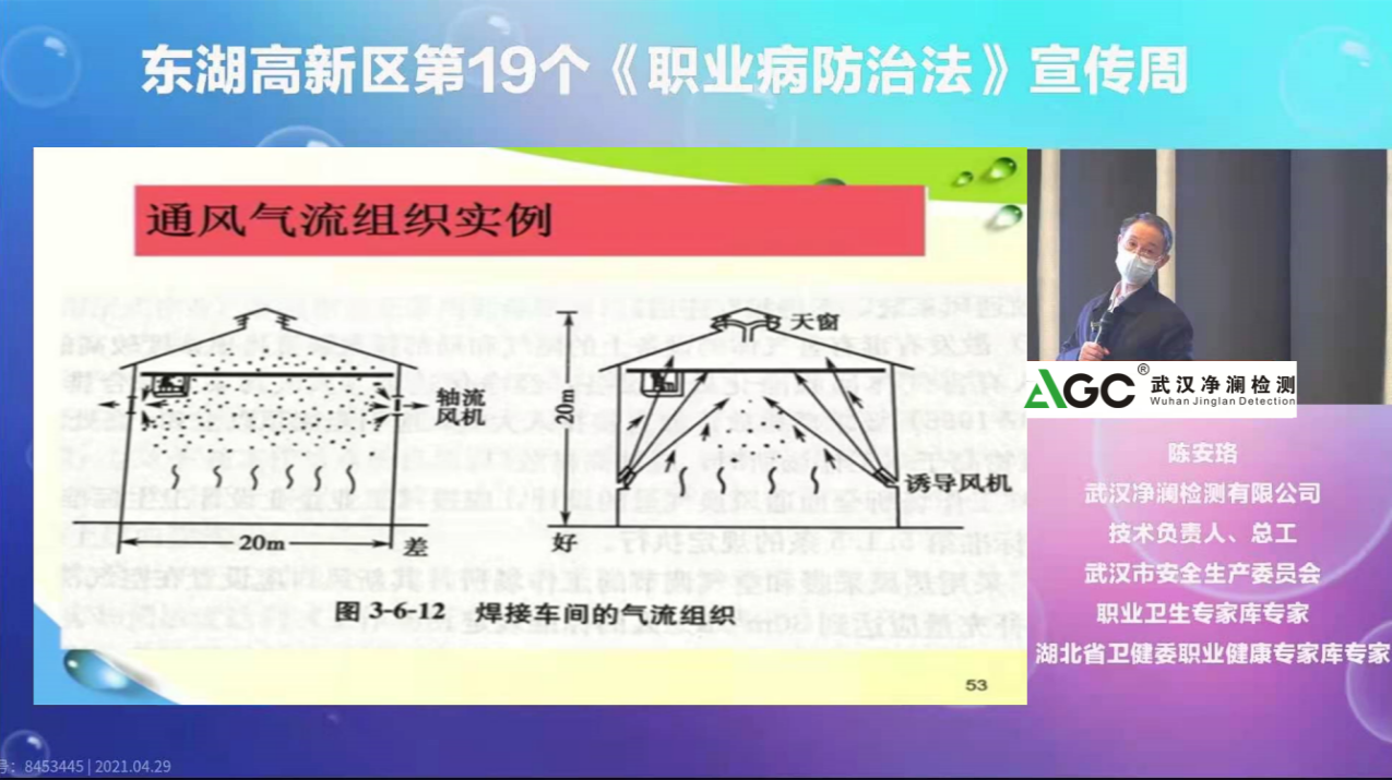 武汉东湖新技术开发区卫健局针对园区企业特点开展宣讲活动,武汉净澜检测有限公司特邀武汉市职业病防治院主任医师、副院长陈振龙老师和我司职业卫生专家陈安珞老师进行法律法规、职业病防治相关知识的宣讲。通过宣传片、主题展板、专家讲解、发放职业卫生知识宣传品和免费发放职业卫生防护用品等一系列活动,推动用人单位落实职业病防治主体责任,切实保障广大劳动者的职业健康权益。开展线下活动同时,还采取斗鱼同步线上直播,利用直播扩大受众人数,将活动主题、宣教内容辐射了光谷其他企业。
