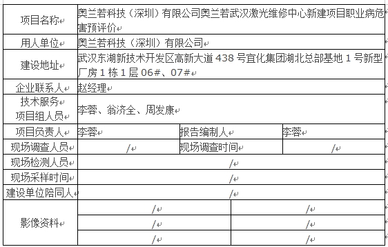 奥兰若科技(深圳)有限公司奥兰若武汉激光维修中心新建项目